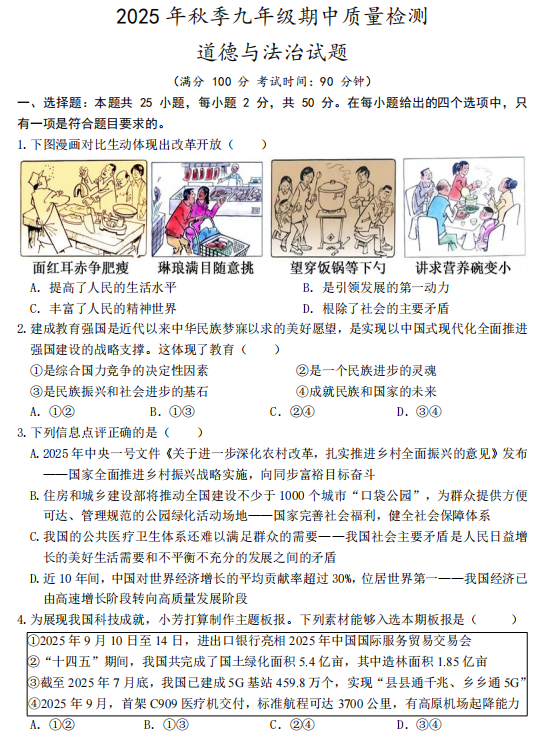 吉林省通化市实验中学2025-2026学年七年级上学期期末历史试题