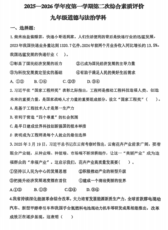 黑龙江省齐齐哈尔市拜泉县2025-2026学年七年级上学期1月期末历史试题