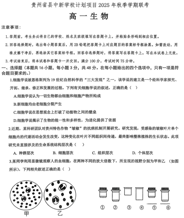 西北四省三重教育2025-2026学年高三上学期12月高考适应性考试生物试卷