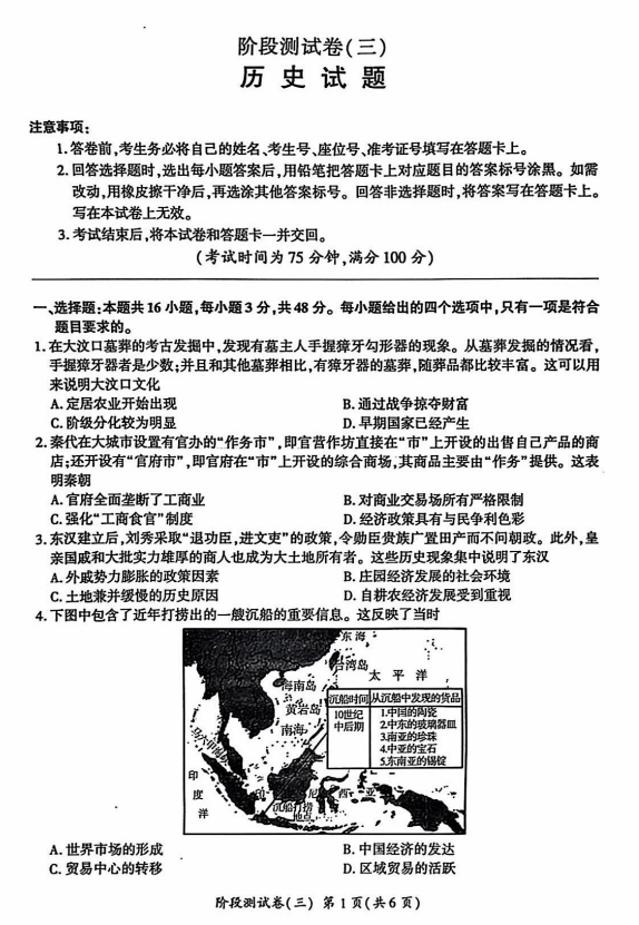 2025届辽宁省高三下学期第三次模拟考试历史试题