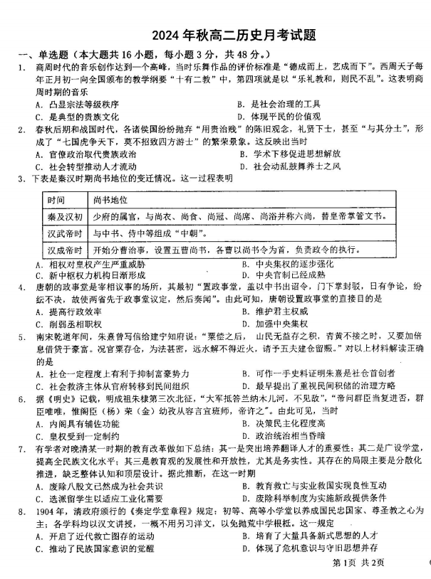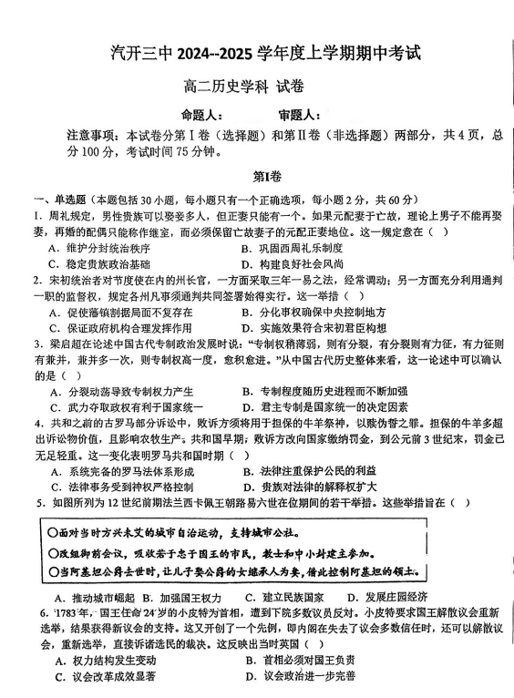山西省朔州市2024-2025学年高三下学期4月月考历史试题