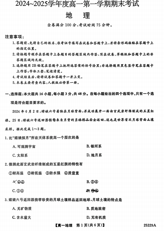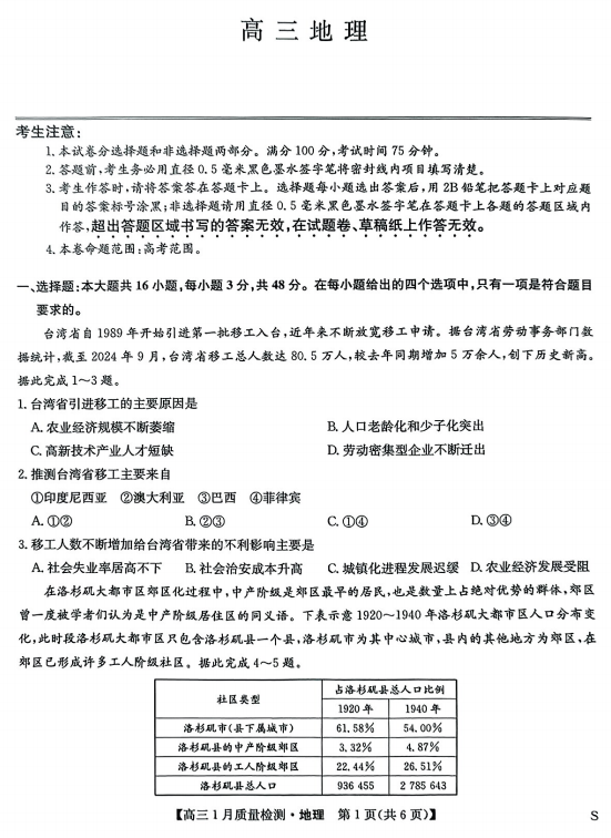 河北省邯郸市2025-2026学年高三上学期期中考试地理试题