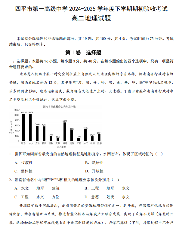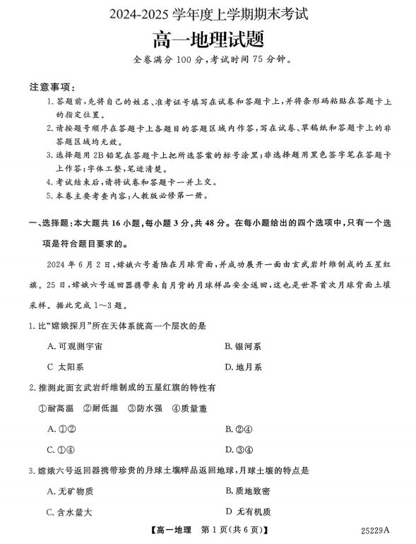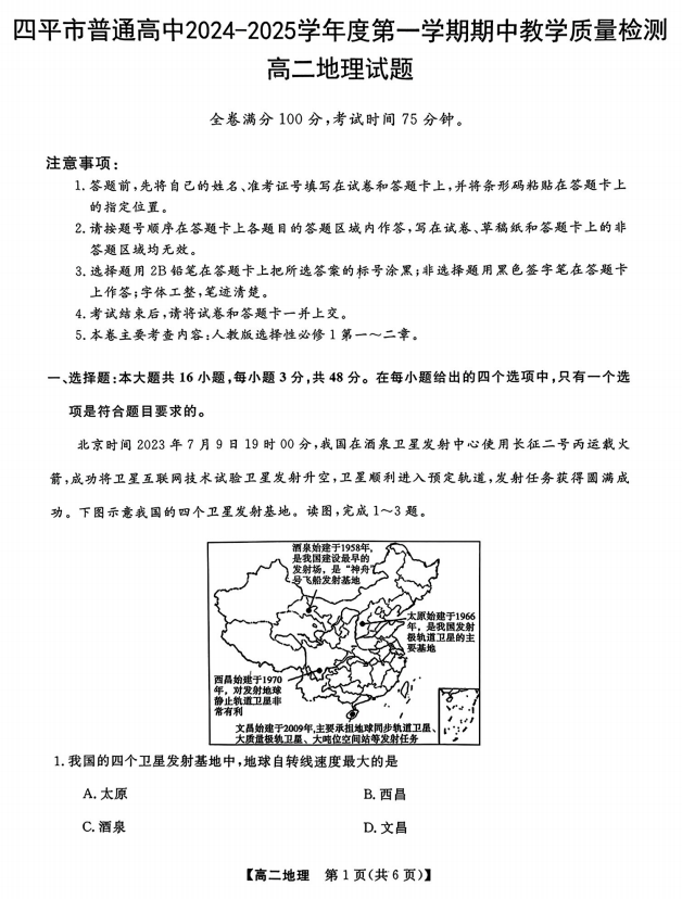 山东省济南市长清区2025-2026学年高三上学期11月期中质量检测地理试题