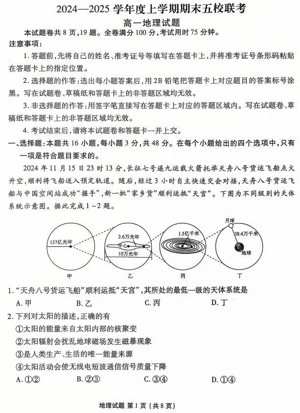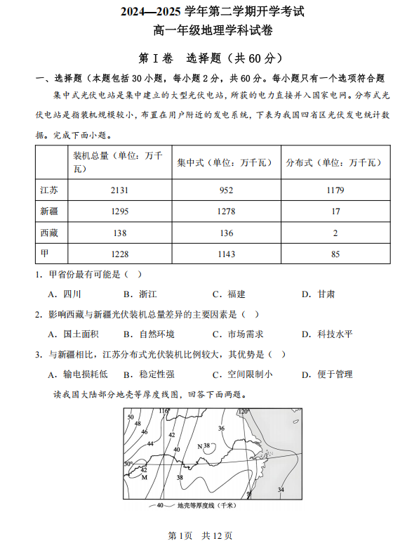 江苏省南通市区、通州区、启东市+如东县2025-2026学年高三上学期11月期中地理试题