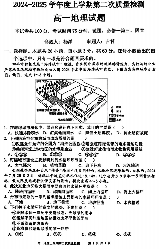 天津市西青区当城中学2025-2026学年高三上学期期中考试地理试卷
