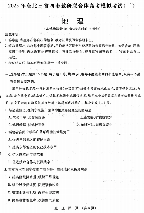 高中地理真题