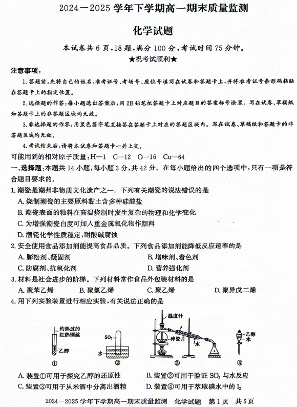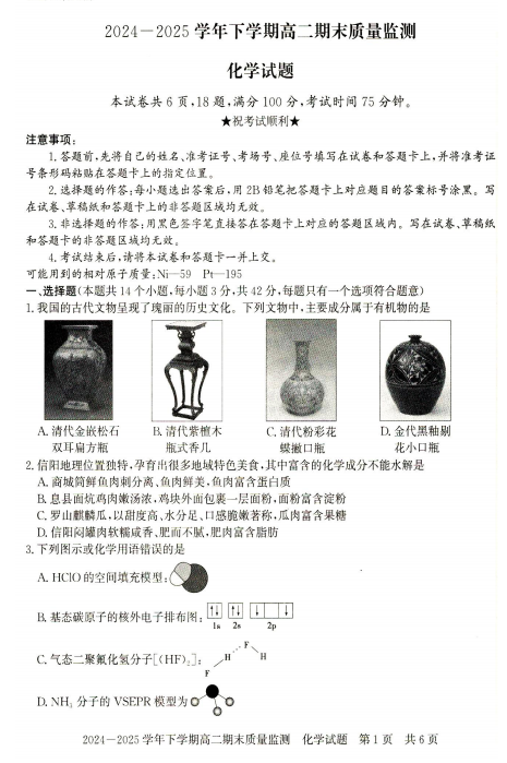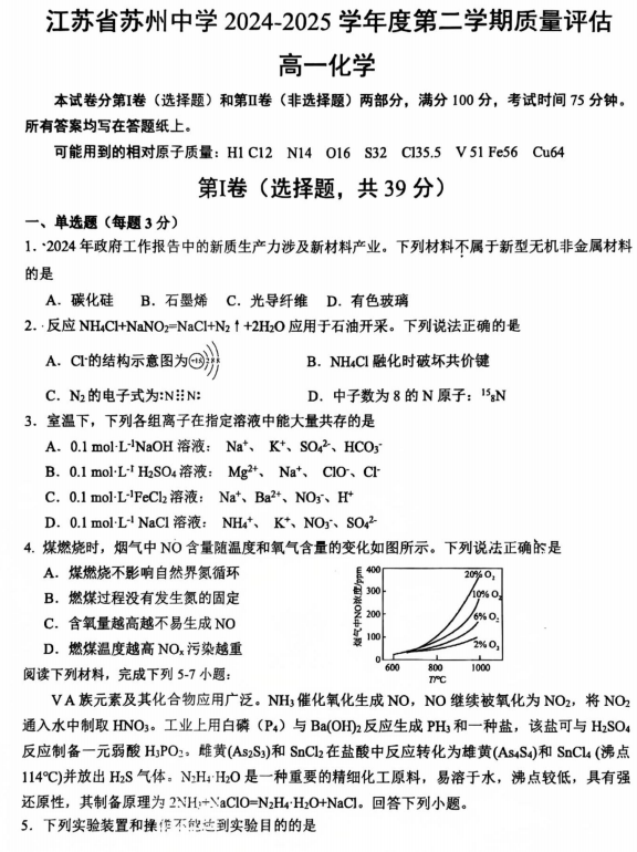 河北冀州中学2025-2026学年高三上学期12月月考化学试题