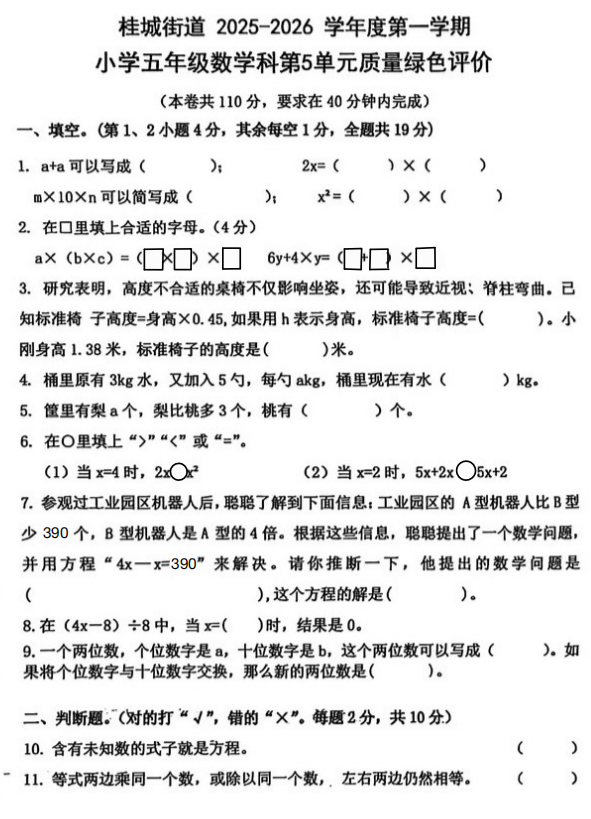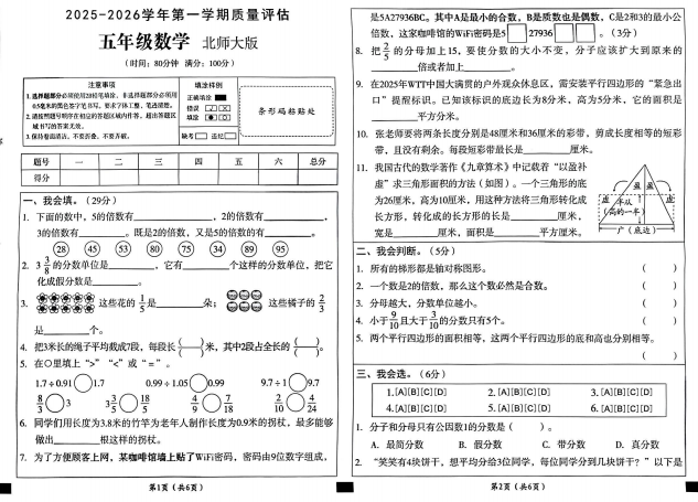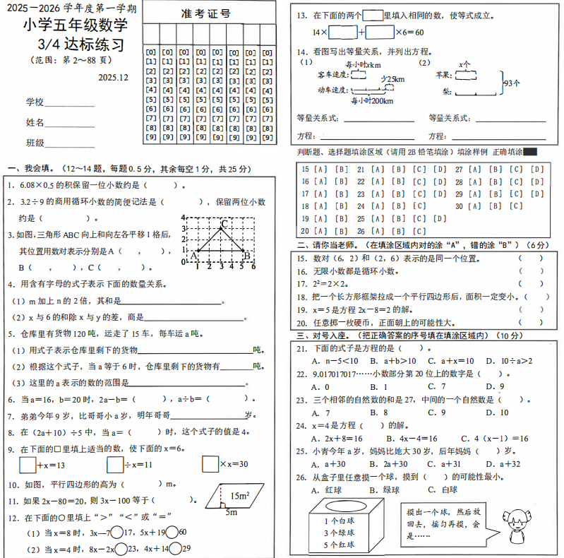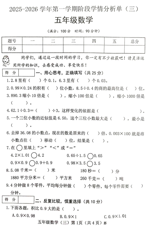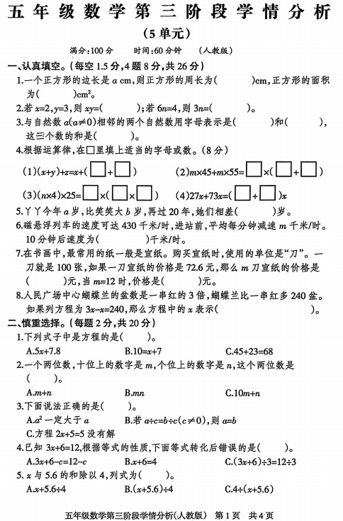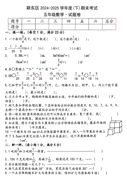 五年级数学真题