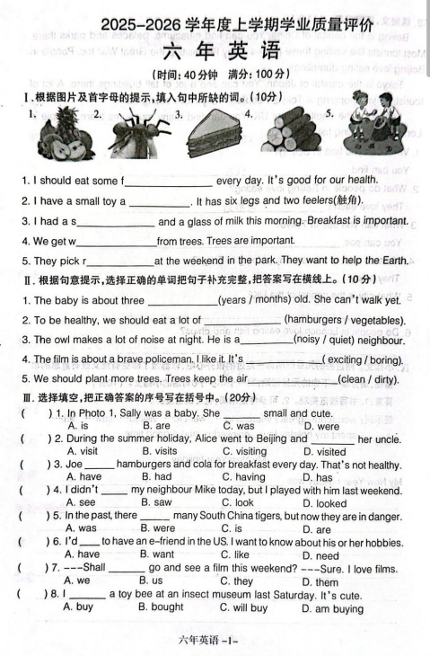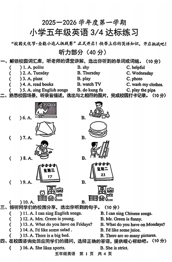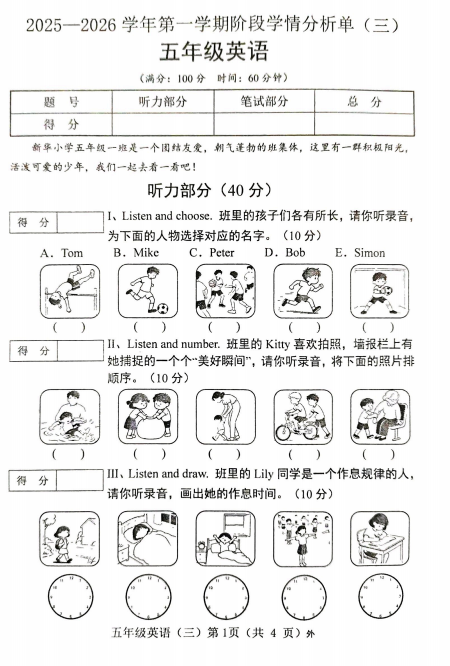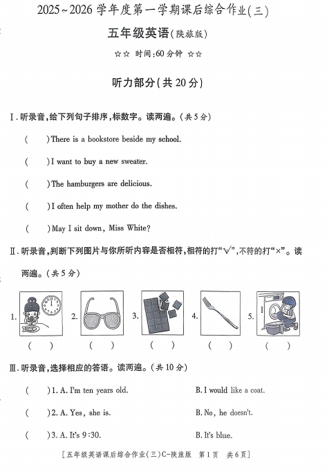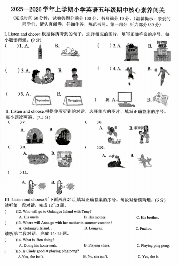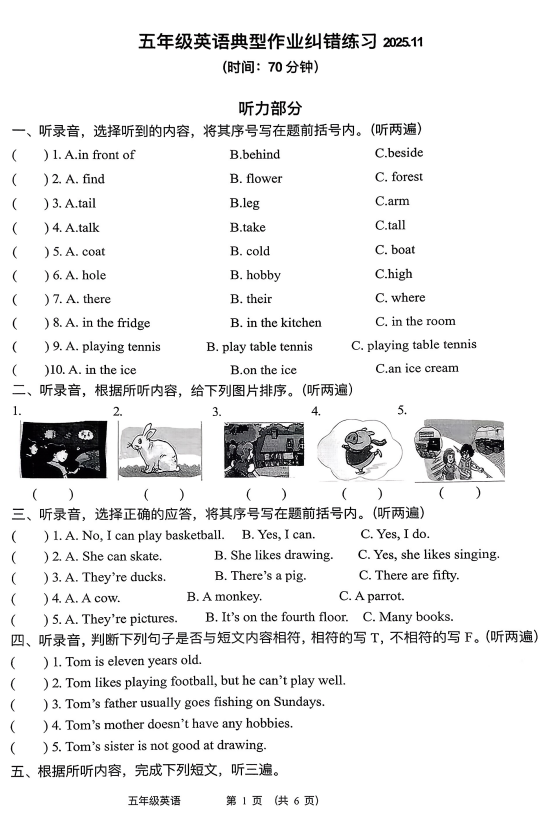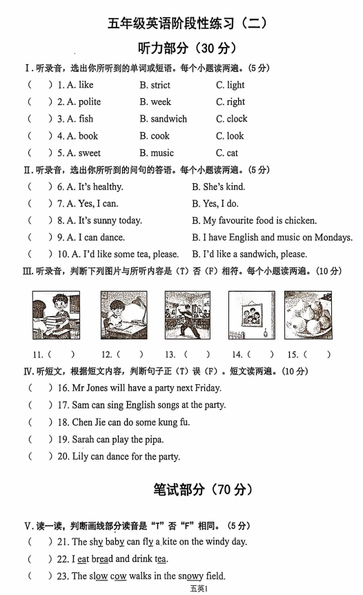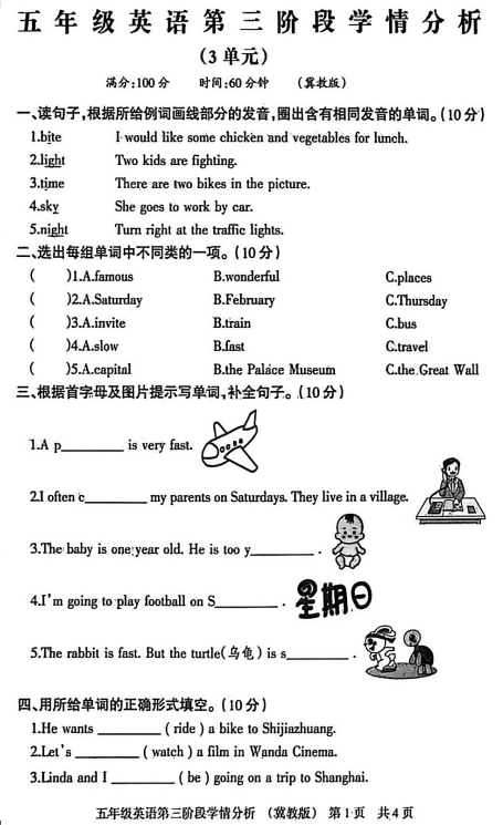 五年级英语真题