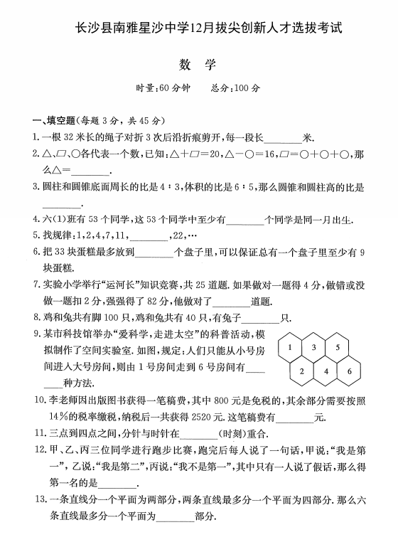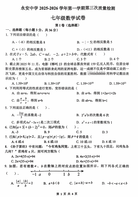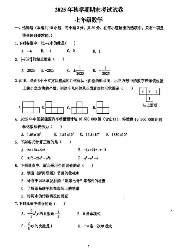 七年级数学真题