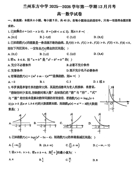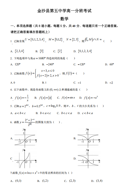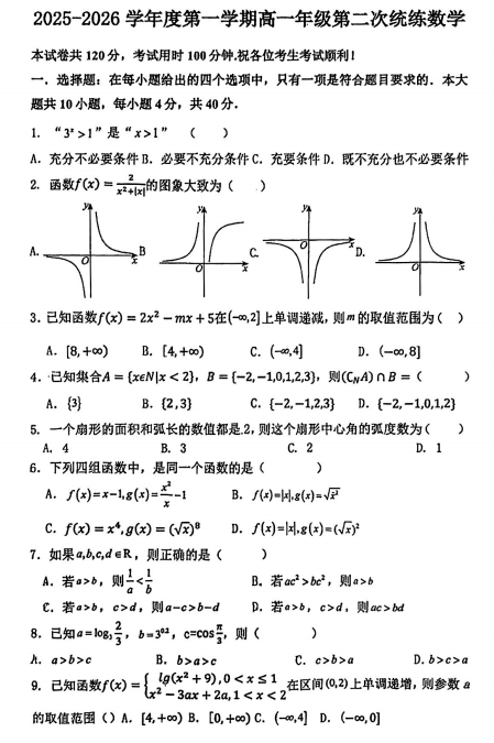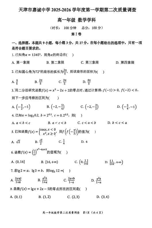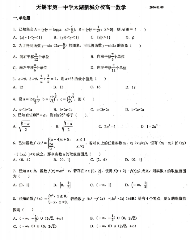高一数学真题