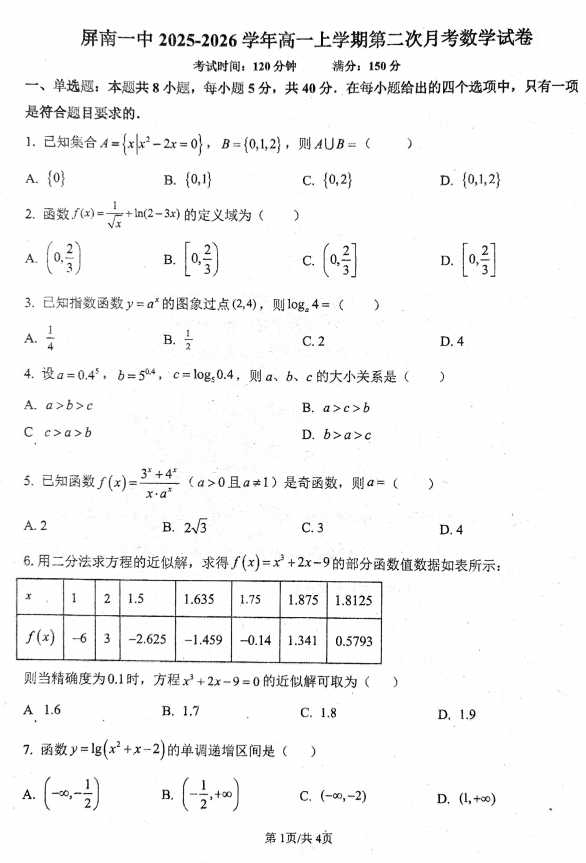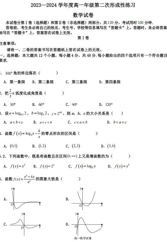 高一数学真题