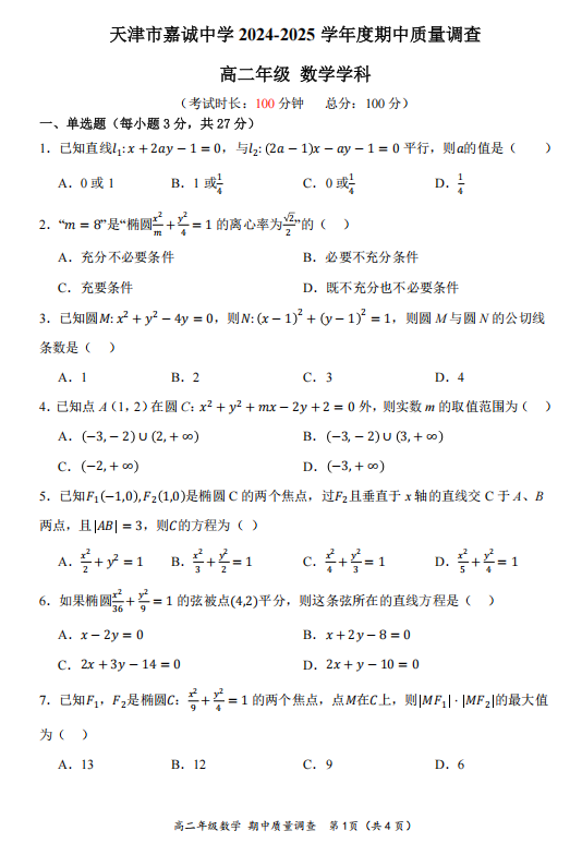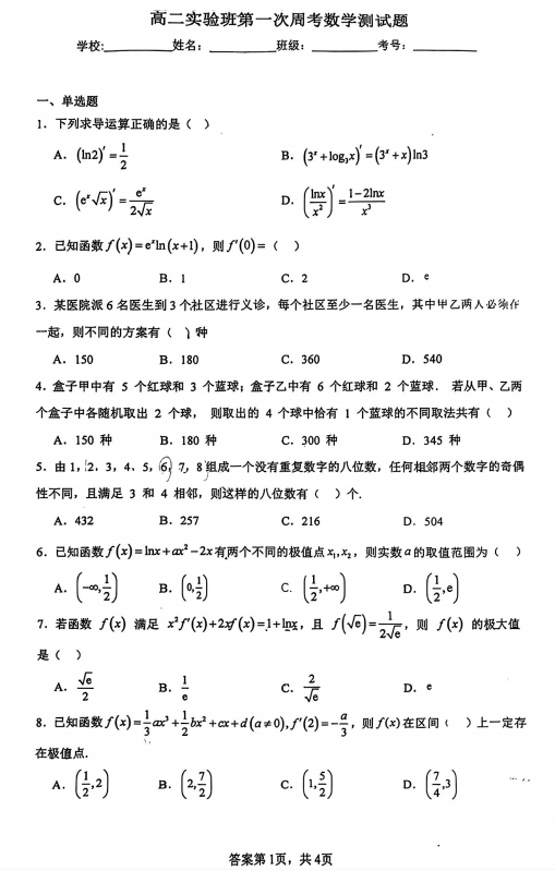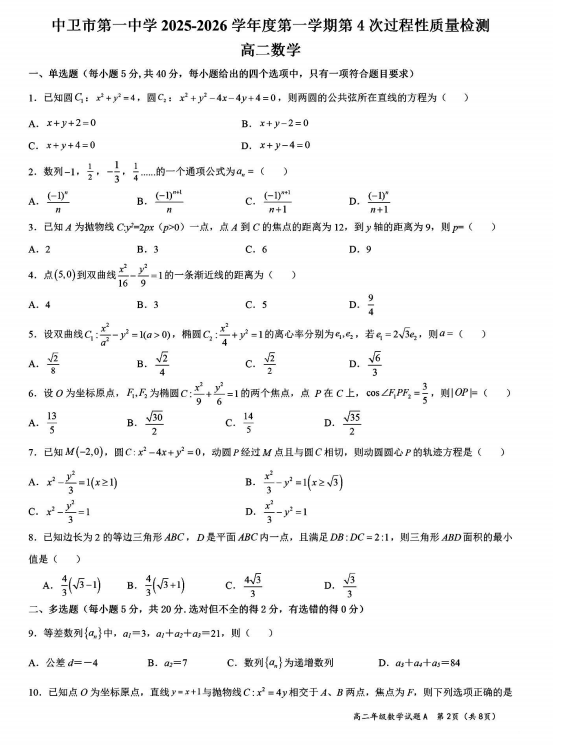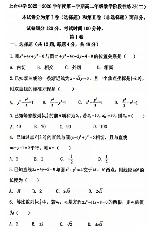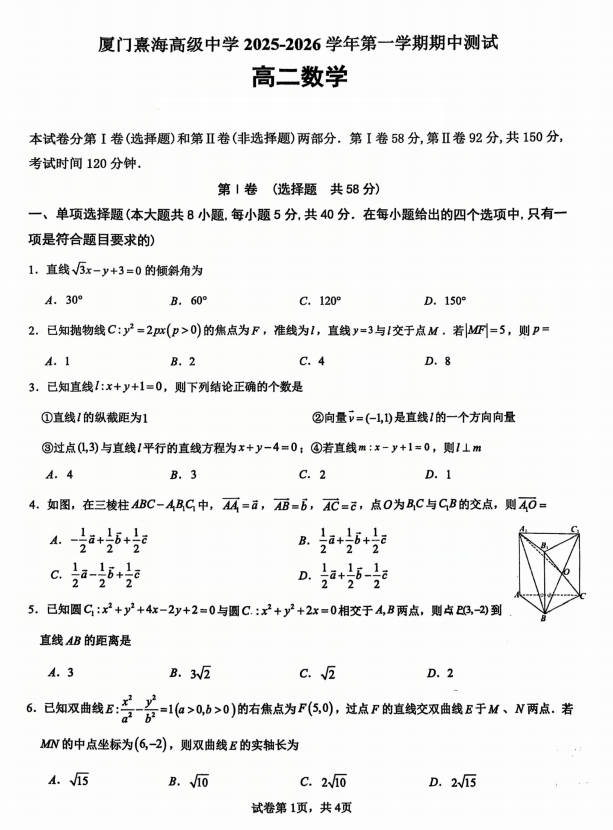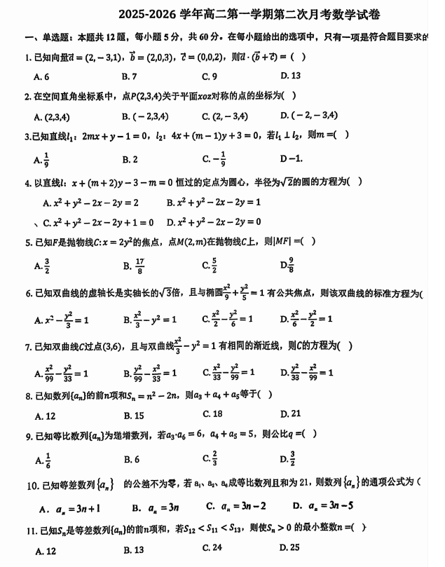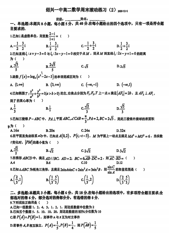 高二数学真题
