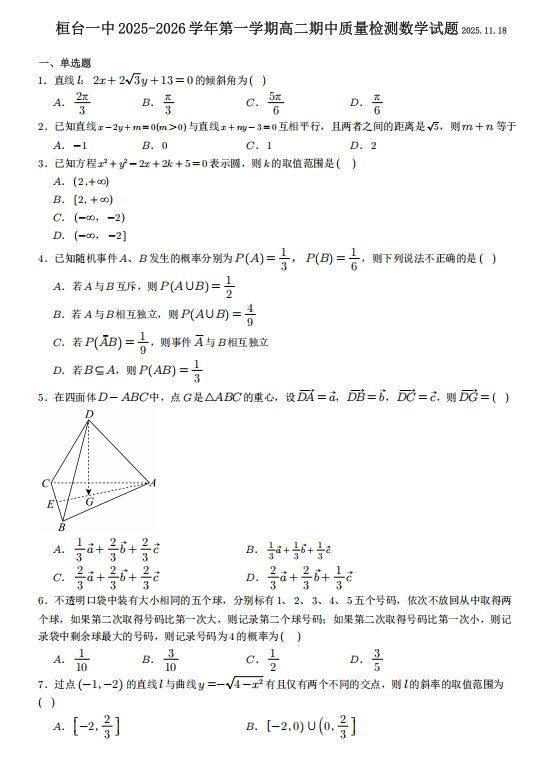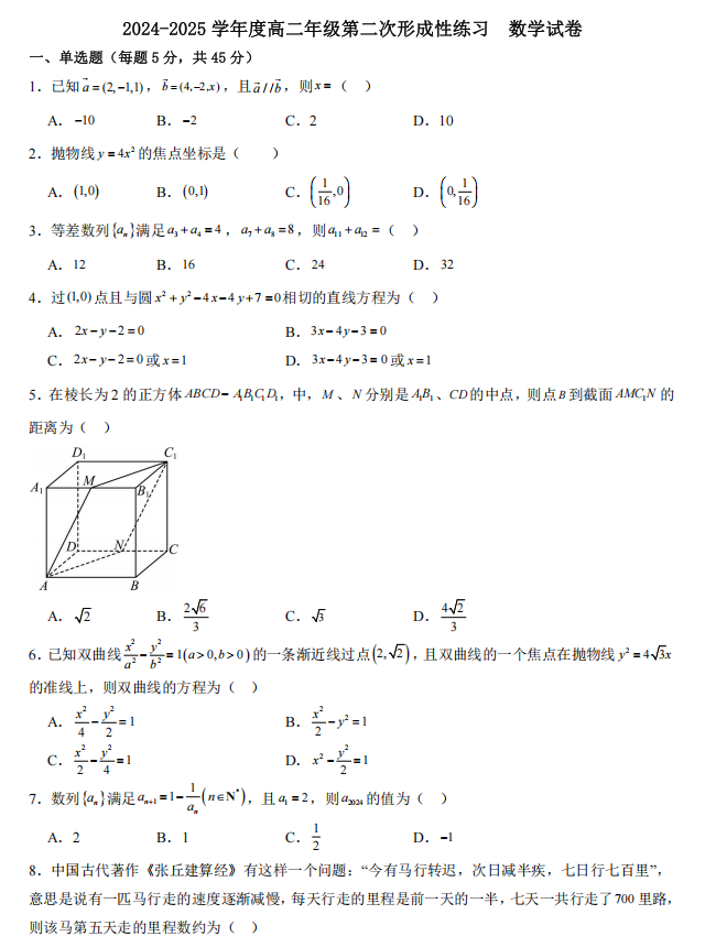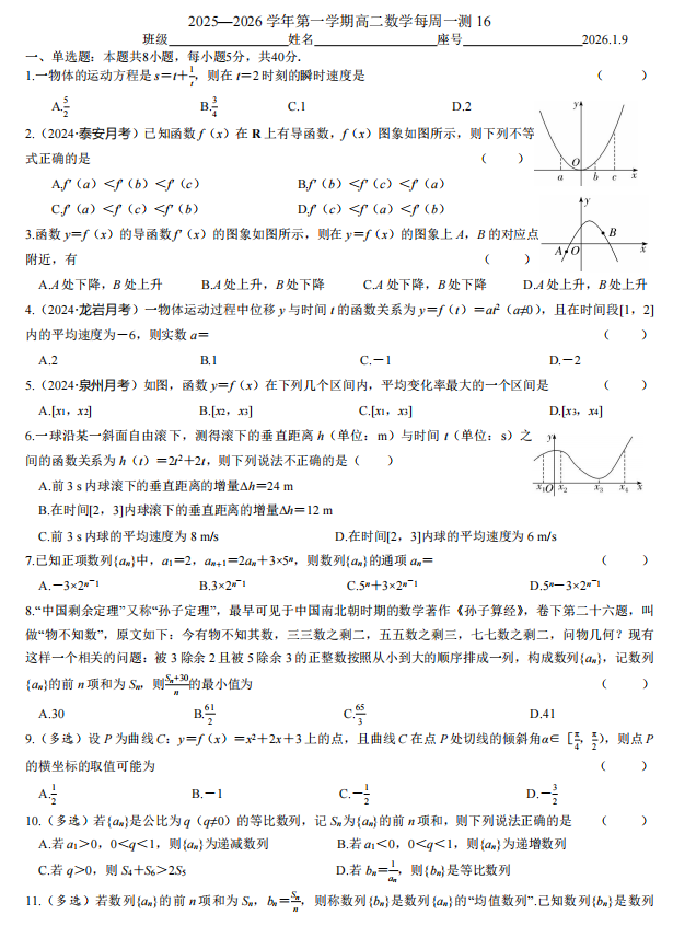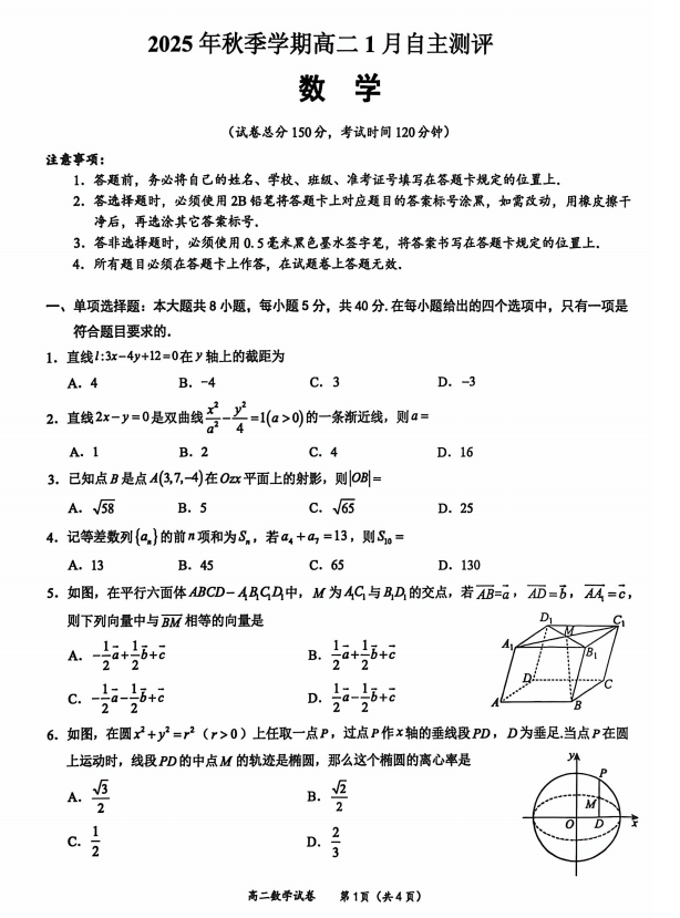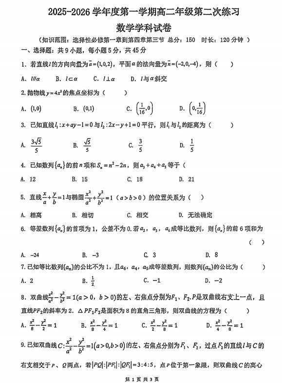 高二数学真题