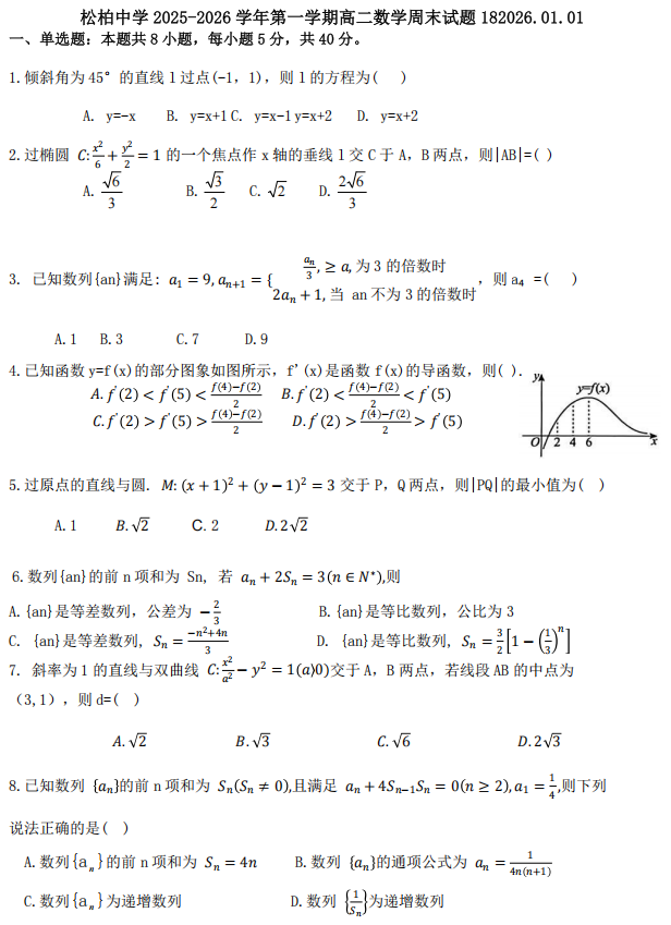 福建省漳州市第三中学2025-2026学年高二上学期数学试卷3