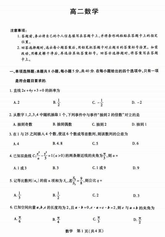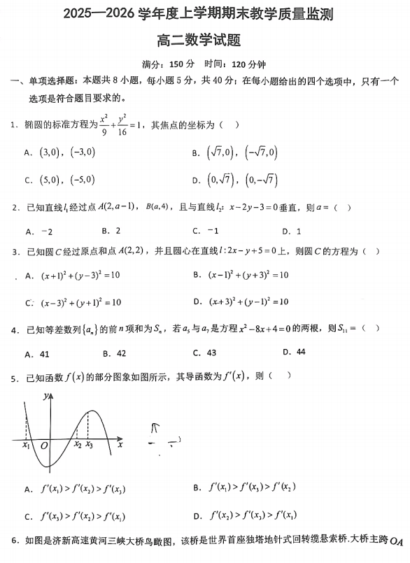 贵州省名校协作体2025-2026学年高二上学期11月期中数学试题