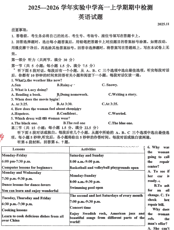天津市津南区实验中学津南学校2025-2026学年高三上学期第二次月考英语试卷