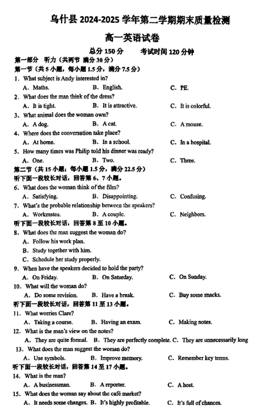 陕西省渭南市高三上学期12月学业水平考试英语试题